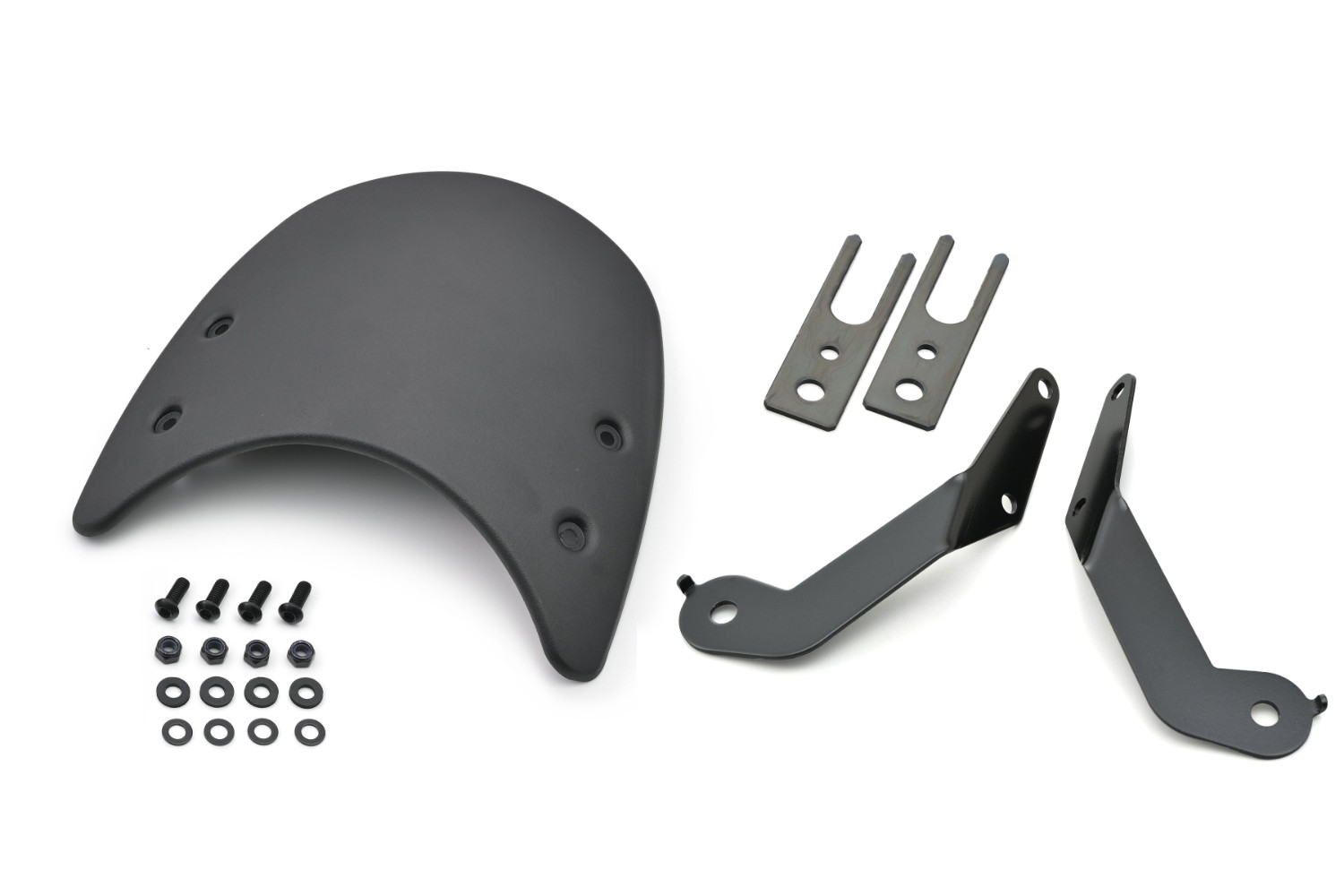 Windschild aus schwarz-eloxiertem Aluminium inklusive Montagesatz passend für Kawasaki W800 (2011-2016).